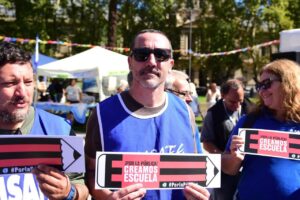 En el marco del plan de lucha provincial, este jueves 9 de abril, acompañamos a AMSAFE ROSARIO en una intensa y masiva jornada en la Carpa Blanca instalada en Plaza San Martín, consolidando este espacio como un punto de encuentro, visibilización y construcción colectiva en defensa de la Escuela Pública.
