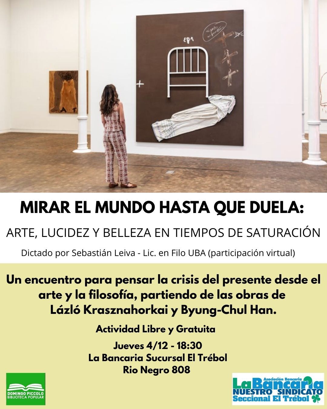 En el día de ayer, jueves 4 de diciembre, las secretarias de DDHH de la comisión directiva departamental Nancy Baez y Soledad Piazzo participaron de una actividad propuesta por la Biblioteca «Domingo Piccolo» de El Trébol y «La Bancaria».