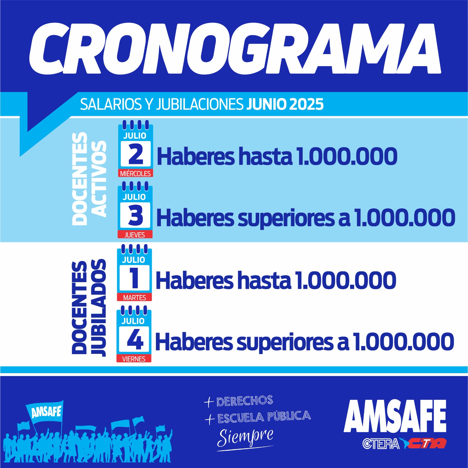 Cronograma de pago de Julio 2025