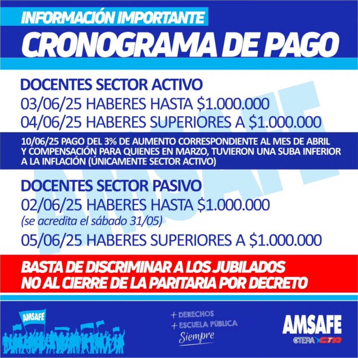 CRONOGRAMA DE PAGO MAYO: ¡BASTA DE DISCRIMINAR A COMPAÑEROS JUBILADOS!