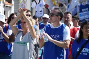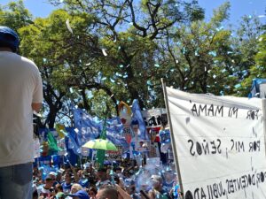 Finalmente, el secretario General de AMSAFE ratificó la continuidad del plan de lucha y convocó a los presentes a seguir peleando, “a seguir hablando con cada compañera y con cada compañero. Los invito y los convoco a seguir entrelazándonos, abrazando a la comunidad educativa. Los invito a que no bajemos los brazos, los invito a que sepamos que este camino es largo, pero que el final de este camino va a ser la victoria. Los invito a que abracemos la Carpa Blanca en los 19 departamentos. ¡Mucha fuerza, compañera! ¡Mucha fuerza, compañero! ¡Hoy más que nunca, la victoria está en nuestras manos! Muchas gracias